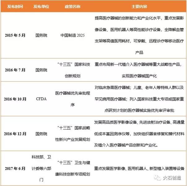 2015年(nián)國(gδuó)務院印發的(de)《中國(guó)制(zhì)造2025》強“生(shēng)物(wù)醫(yī)藥及高(gāo)性能(néng)醫(yī)療器(qì)械”列為(wèi)重點突破發展的(de)十大(dà)領域之一(yī),提出“提高(gāo)醫(yī)療器(qì)械的(de)創新能(n&éng)力和(hé)産業(yè)化(huà)水(shuǐ)平,重點發展影(yǐng)像設備、醫(yī)用(yòng)機(jī)器(qì)人(rén)等高(g₩āo)性能(néng)診療設備,全降解血管支架等高(gāo)值醫(yī)用(yòng)耗材,可(kě)穿戴、遠(yuǎn)程診療等移動醫(yī)療産品”,這(zh↕è)也(yě)被認為(wèi)是(shì)國(guó)家(jiā)明(míng)确要(yào)推進高(gāo)端醫(yī)療器(qìε)械國(guó)産化(huà)替代的(de)信号。