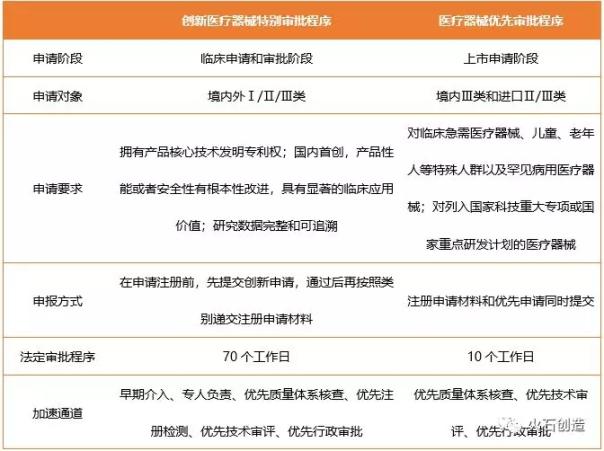 表2 創新醫(yī)療器(qì)械特别審批和(hé)醫(yī)療器(qì)械優先審批的(de)區(qū)别