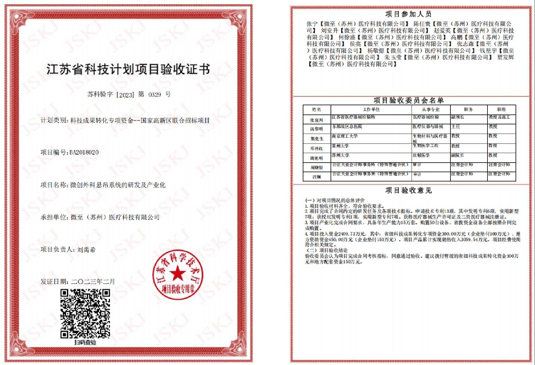 江蘇省科(kē)技(jì)計(jì)劃項目驗收證書(shū)